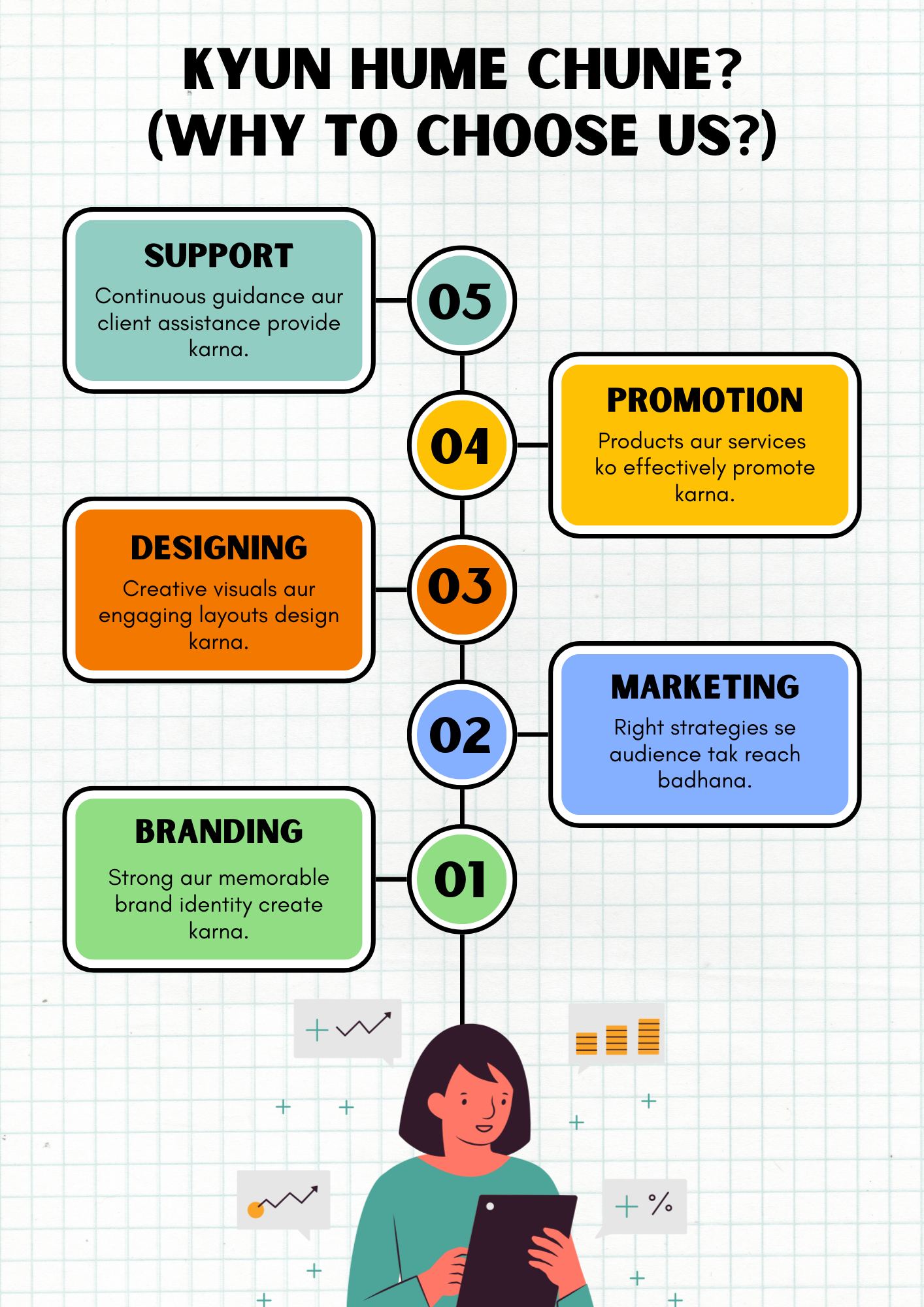 Hum aapke business ke liye practical, result-driven digital solutions provide karte hain jo sales, visibility aur customer reach dono badhate hain.